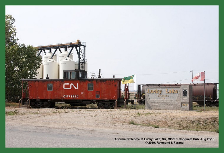 Former CN 79226 van greets visitors to Lucky Lake a tourist area.