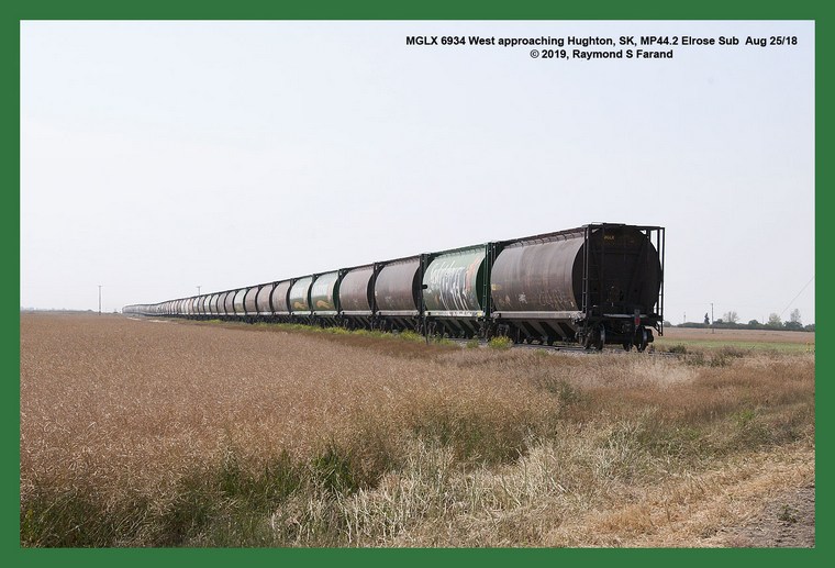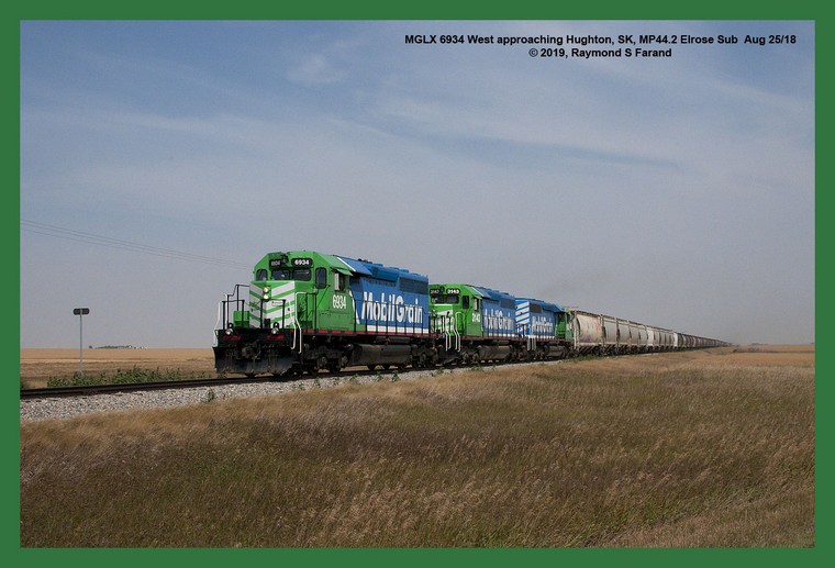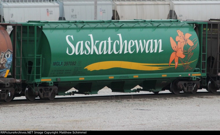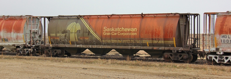 in Chamberlain, August 17, 2014 The Government of Saskatchewan sold off its fleet of covered hopper cars in 2017. Big Sky acquired 663 of the 898 remaining cars. Reporting marks MGLX. Also, Great Western acquired 150 cars and Great Sandhills acquired 85 cars. MGLX 10086 MGLX 10088 MGLX 397082 SKNX 397247