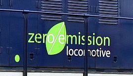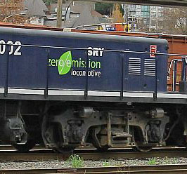 as mother unit eastbound at Mile 9.2 Note the green emblem "Zero emission locomotive"