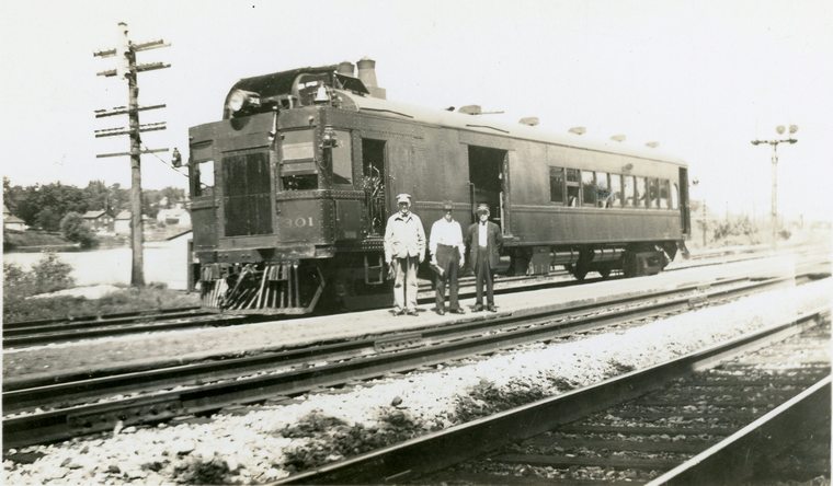 301 only self-propelled car on TH&B with crew posing