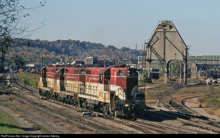 73_74_7X backing to their train from Chatham Street roundhouse to nearby Aberdeen Yard. October 17, 1981