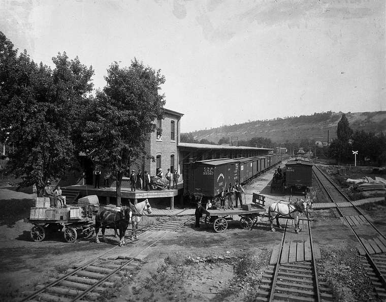 Freight Shed. Hamilton Note Canada Southern box car first on shed track.