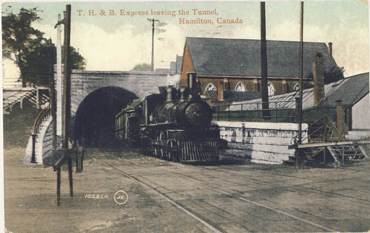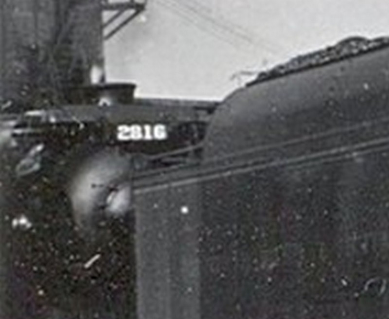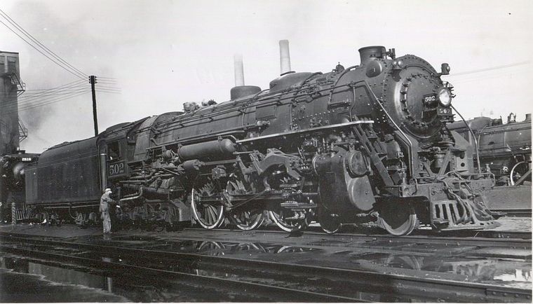 THB 502 with CP 2816 at John Street roundhouse. July 26, 1948 Bud Laws Collecfion 502 (ex NYC 5313) Hamilton 12/1950 Dick George Note: Tender converted to steam generator car 500 to protect passenger diesels. CPR Passenger