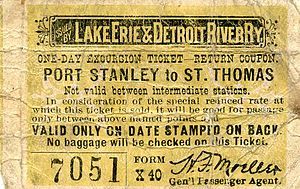 Excursion ticket over L&PS from Port Stanley to St.Thomas. LE&DR switch key.