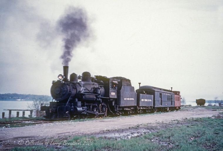 NYC 1291 with Mixed train in Courtright. St.Clair River in background. 1956