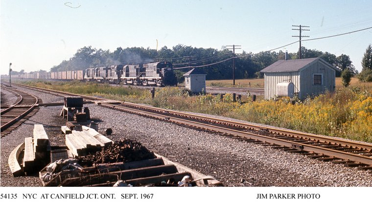 NYC bay window cabooses on tailend. Hagersville