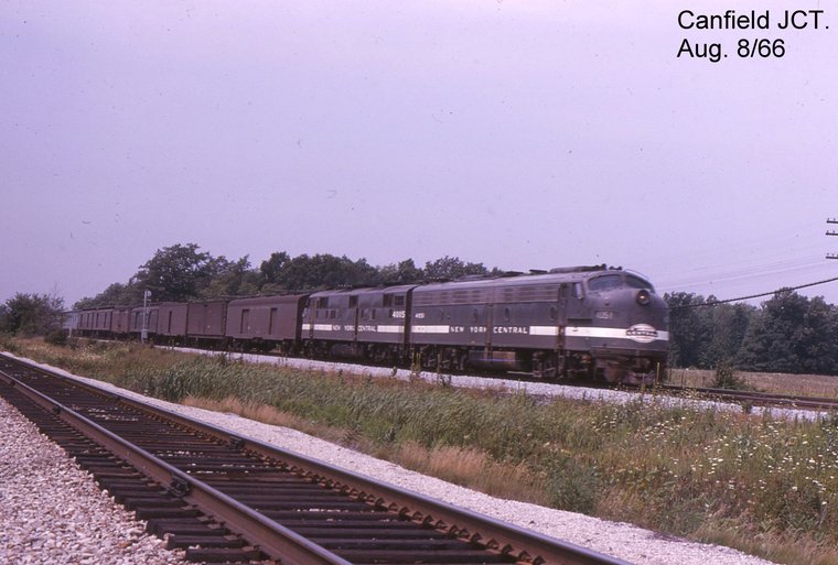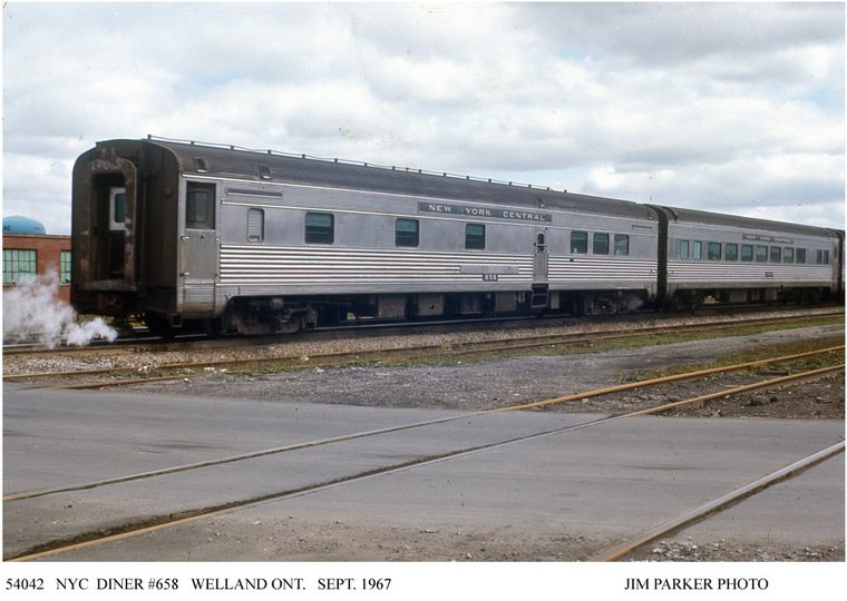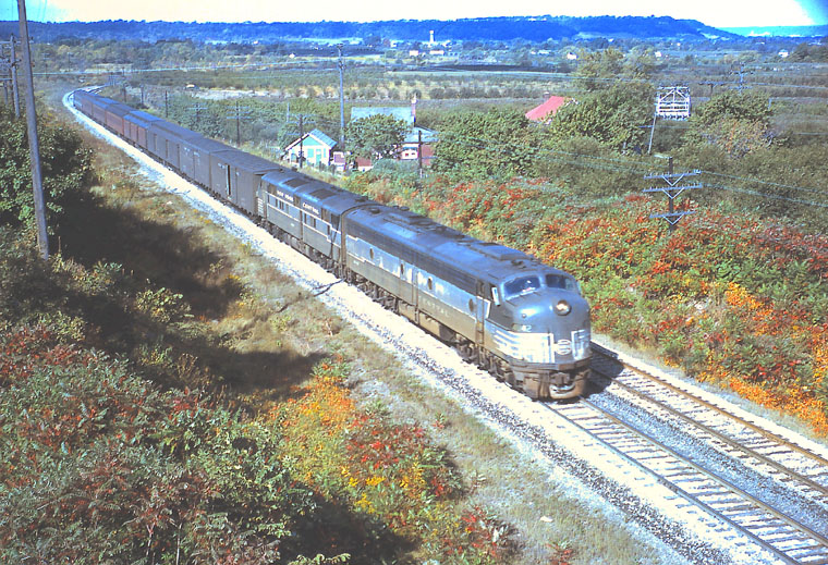 NYC 4042 EMD E8A (14581 8/1951) leads TH&B 372 from Hamilton to Welland and Buffalo enroute to New York City. This equipment ran through from Buffalo to Toronto over the NYC to Welland, TH&B to Hamilton and CPR Joint Section although the diesels were changed at Hamilton. Stoney Creek, Ont. 8/21/1963 Peter Cox Welland