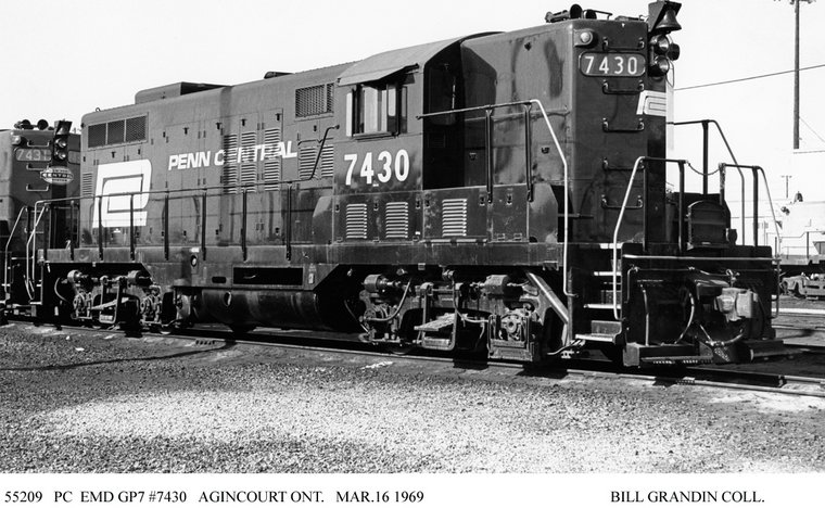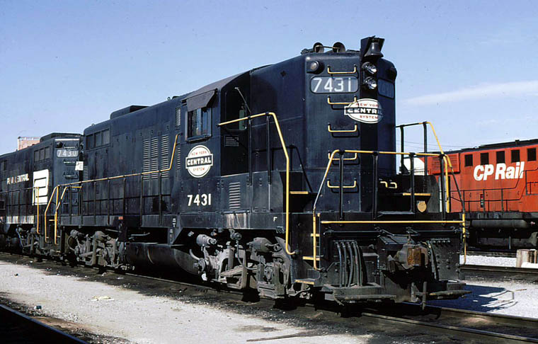 NYC 7431 and PC/ex NYC 7430 (see below) likely with a third unit. Toronto Yard 5/1970 Paul Mc Grane