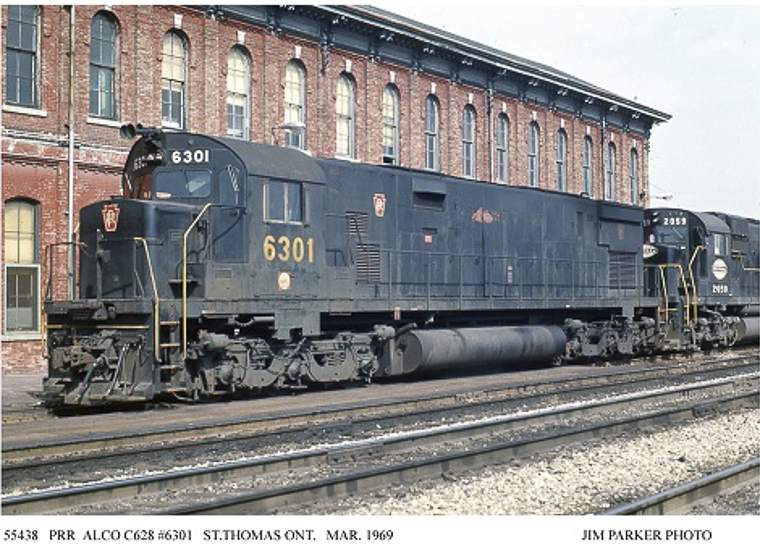 PRR 6301 leads NYC units (below) early Penn Central era. Alco C-628 2750 HP 3404-02 3/1965