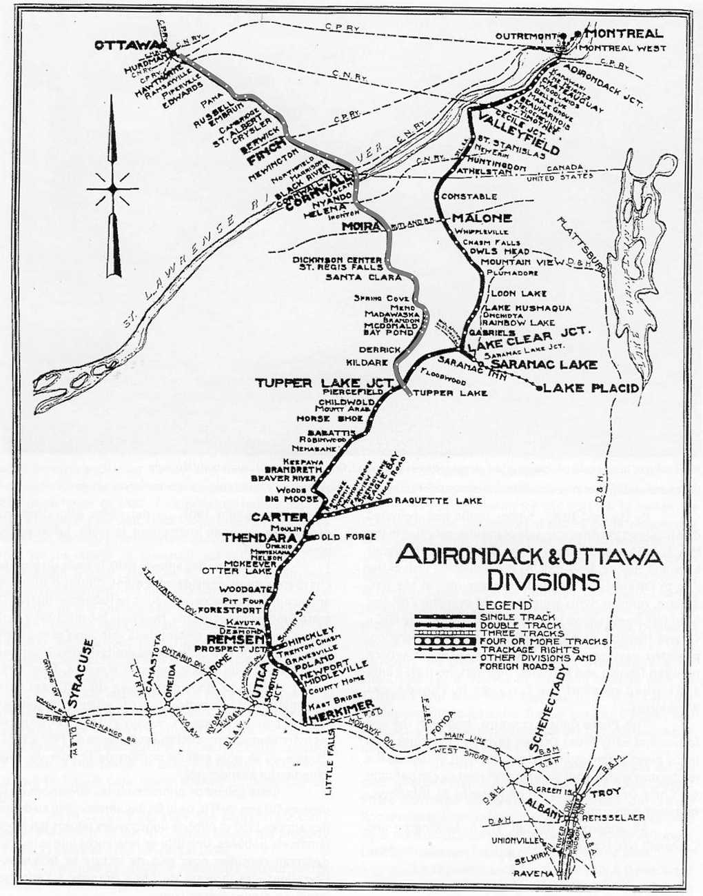 Adirondack & Ottawa Divisions Malone, New York to Adirondack Jct. and St. Luc, Montreal.