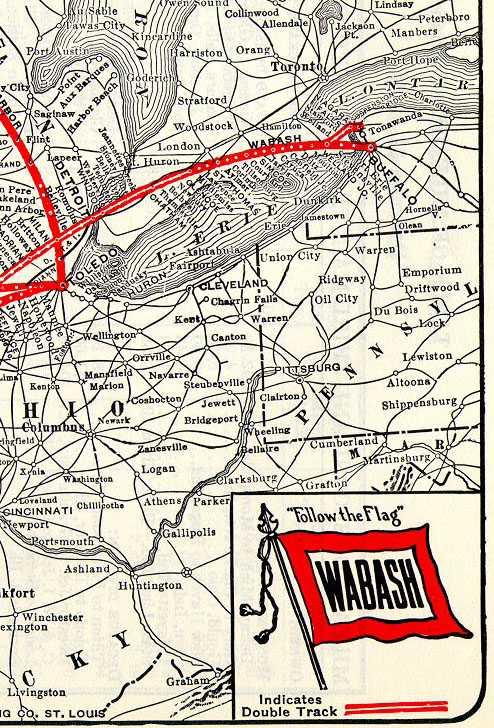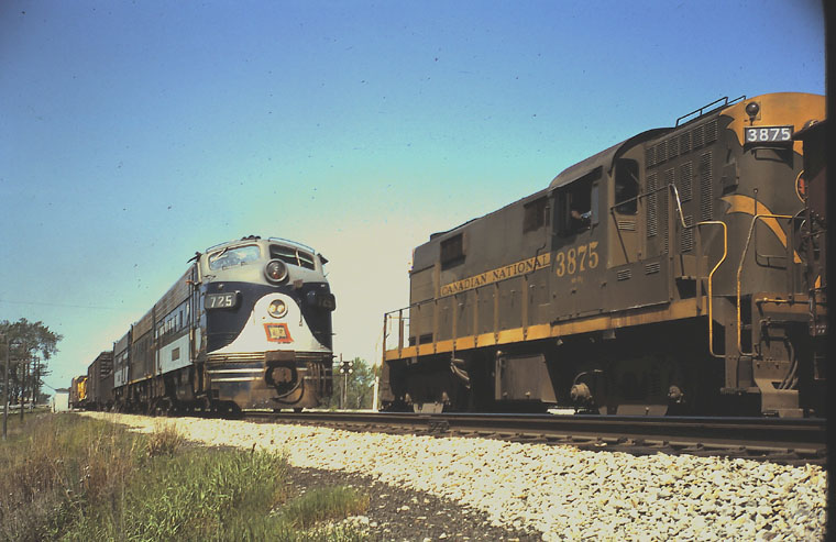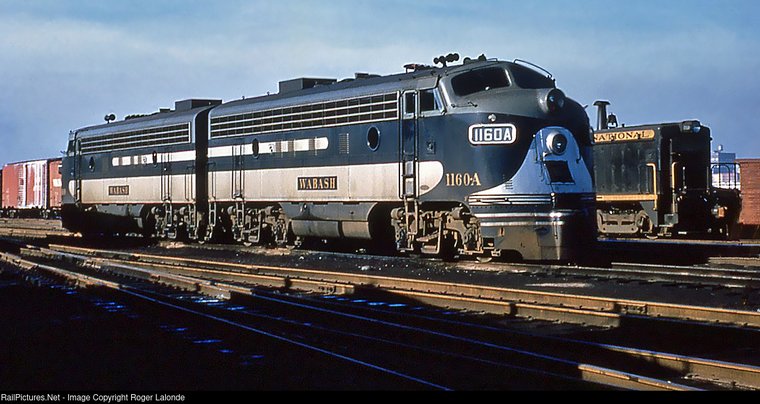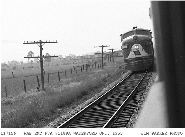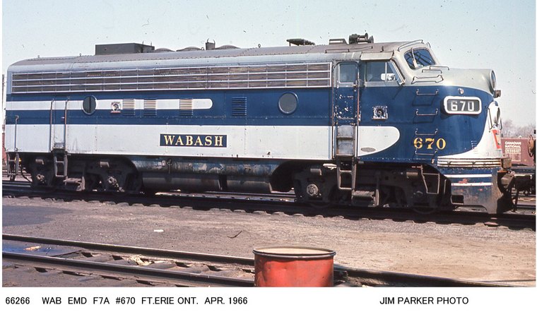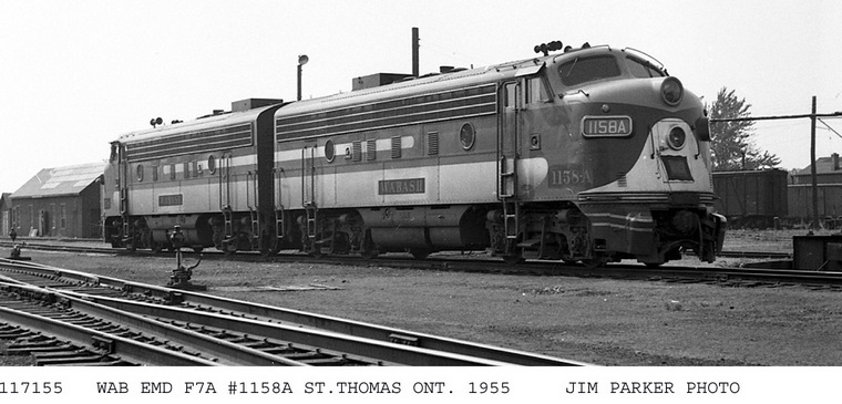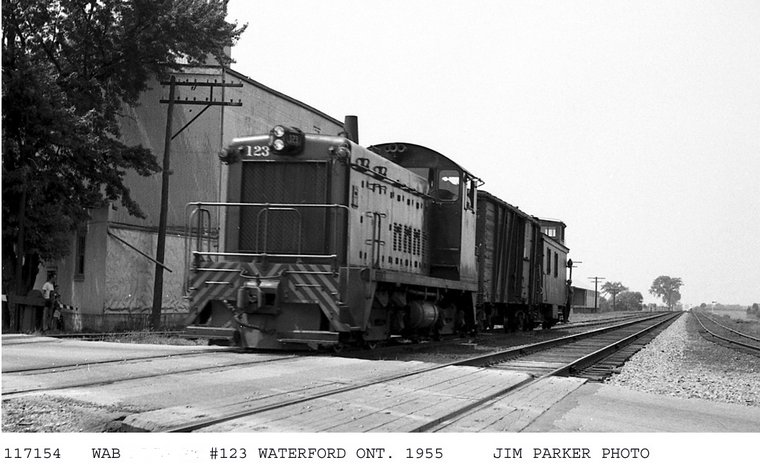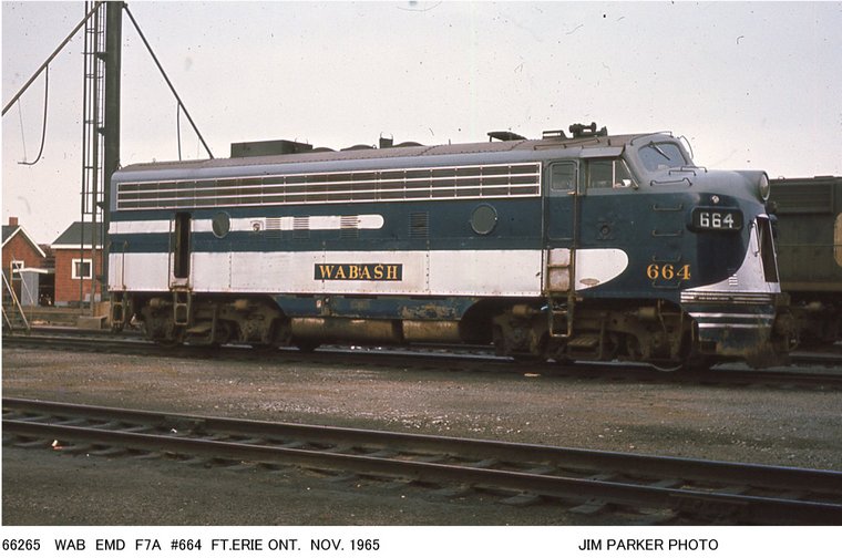 The Wabash operated in Canada entirely by trackage rights on the CNR between Windsor and Fort Erie beginning in March of 1898 over predecessor GTR. While primarily used as a bridge route between Detroit and Buffalo it also served local traffic within Ontario. This continued under Norfolk & Western ownership. Successor Norfolk Southern ended these perpetual rights in 2011 except for transfer interchange at Fort Erie. Wabash used a portion of St.Thomas yard where their own switcher a small 43-ton GE was based. Built in 1939 this was a very early one-man engine, the only one operating in Canada. GMD supplied 22 A units, 4 SW8's and 1 GP7 all built in Canada.