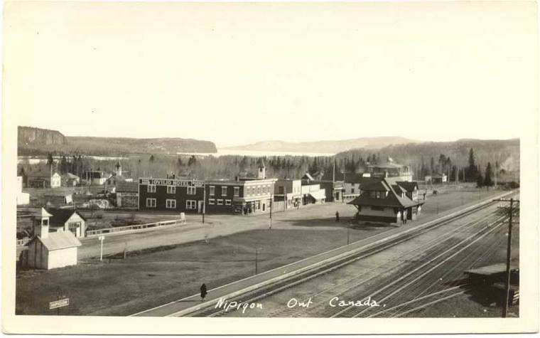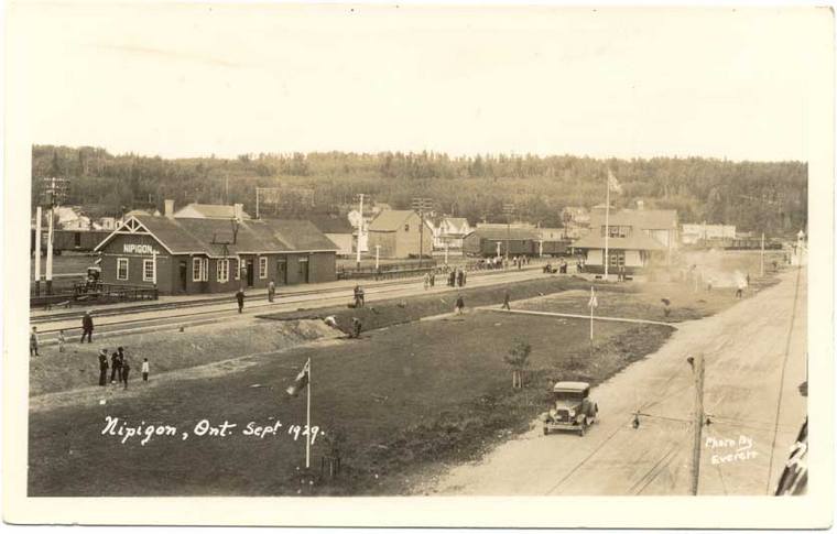 Sod laying is going on for the new station grounds. Old station at left, new at right and below. Collection of Doug Birchill