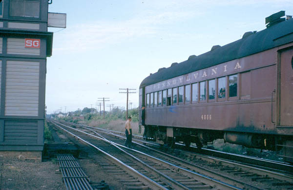 Kahn Last run of PRR 4666 May 29,1962 saw the last run of PRR 4666 between Red Bank and Trenton, New Jersey. Seen here slowing to get orders from the towerman at SG (Sea Girt), then going on to the branch toward Freehold for the last time. Three photographs by Jeff Asay.