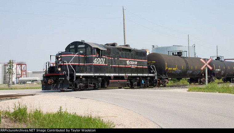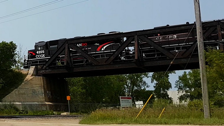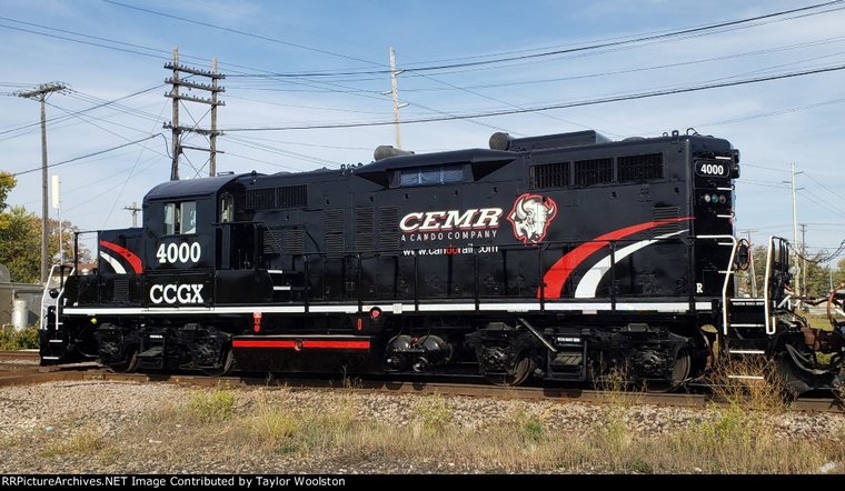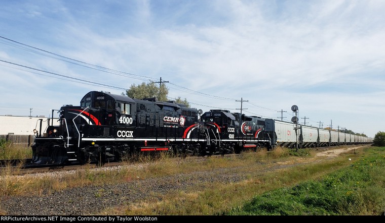 CCGX 4209 (freshly painted) CEMR 4002 with CEMR 526-07 on CCGX 4209 (ex GMTX 2111 nee RI 4301) GP38-2 Six axle power