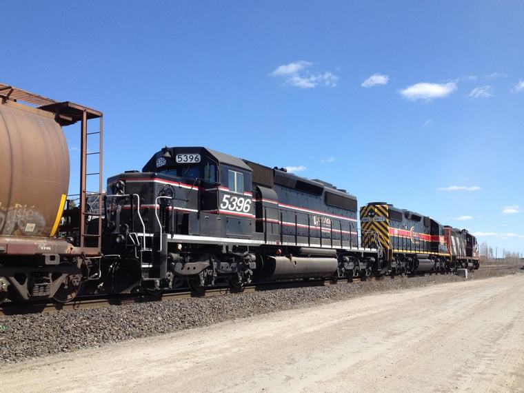 Three photos of 106 car grain train! Pretty good for a shortline! CEFX 6057 (leased 9/2015) nee Reserve Mining 1244 SD38-2 EMD766142-8