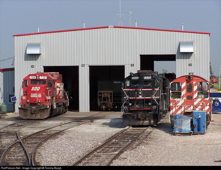 New shop with ex Soo Line 738 SD40 being cannibalized