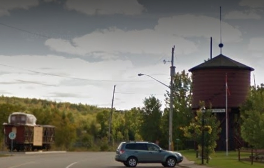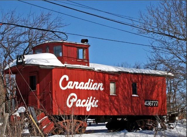 A distance away is ex CNR water tower and wood caboose (acq. 7/2008) CP 436777.