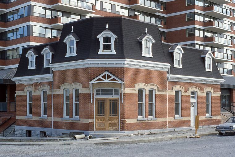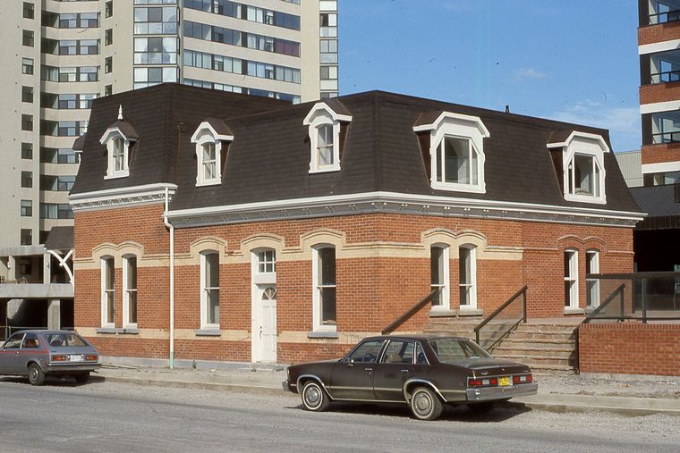 different detail lacking white trim also darker red. Delta Hotels Mariott 4 Star Hotel to left on opposite side of corner. 1 Johnson Street.