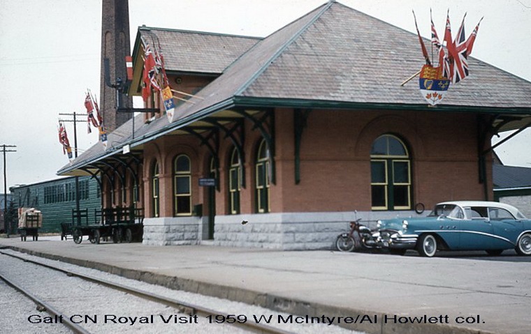 Galt station suitably decorated for the Royal Visit to Canada by the