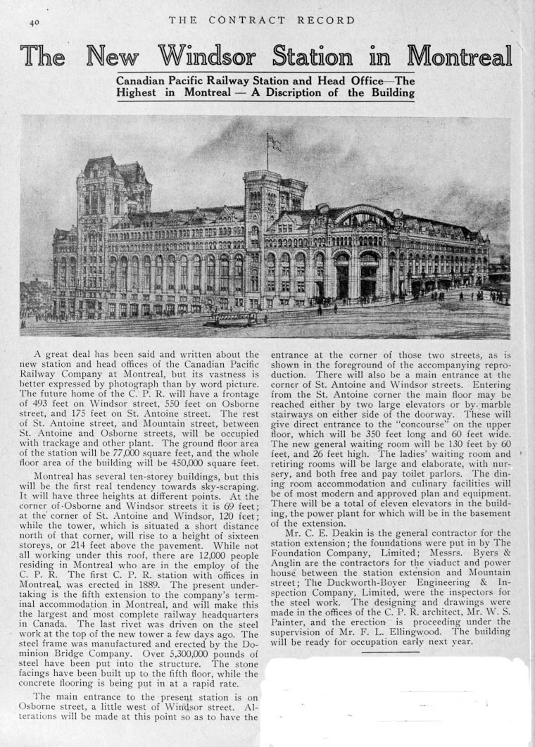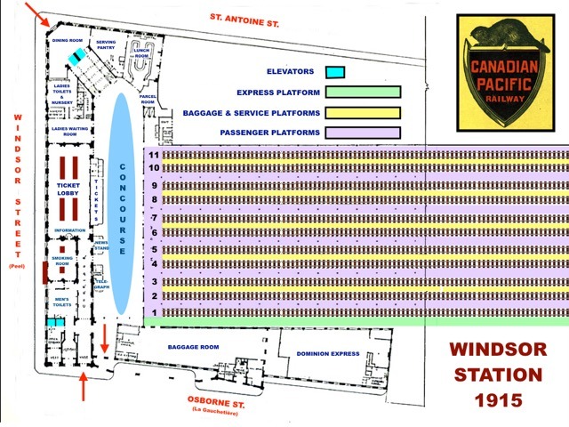 CPR Windsor Street Station Long known as simply Windsor Station, site of the CPR System Headquarters (1889-1996) located in downtown Montreal on Windsor Street which was later renamed Peel Street. Expanded three times, the last in 1916 it had 11 deadend tracks.