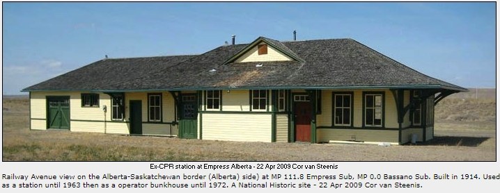 Empress restored in its original paint scheme. Designated historic site. Tracks are gone. High River High River Historical Association Museum of the Highwood
