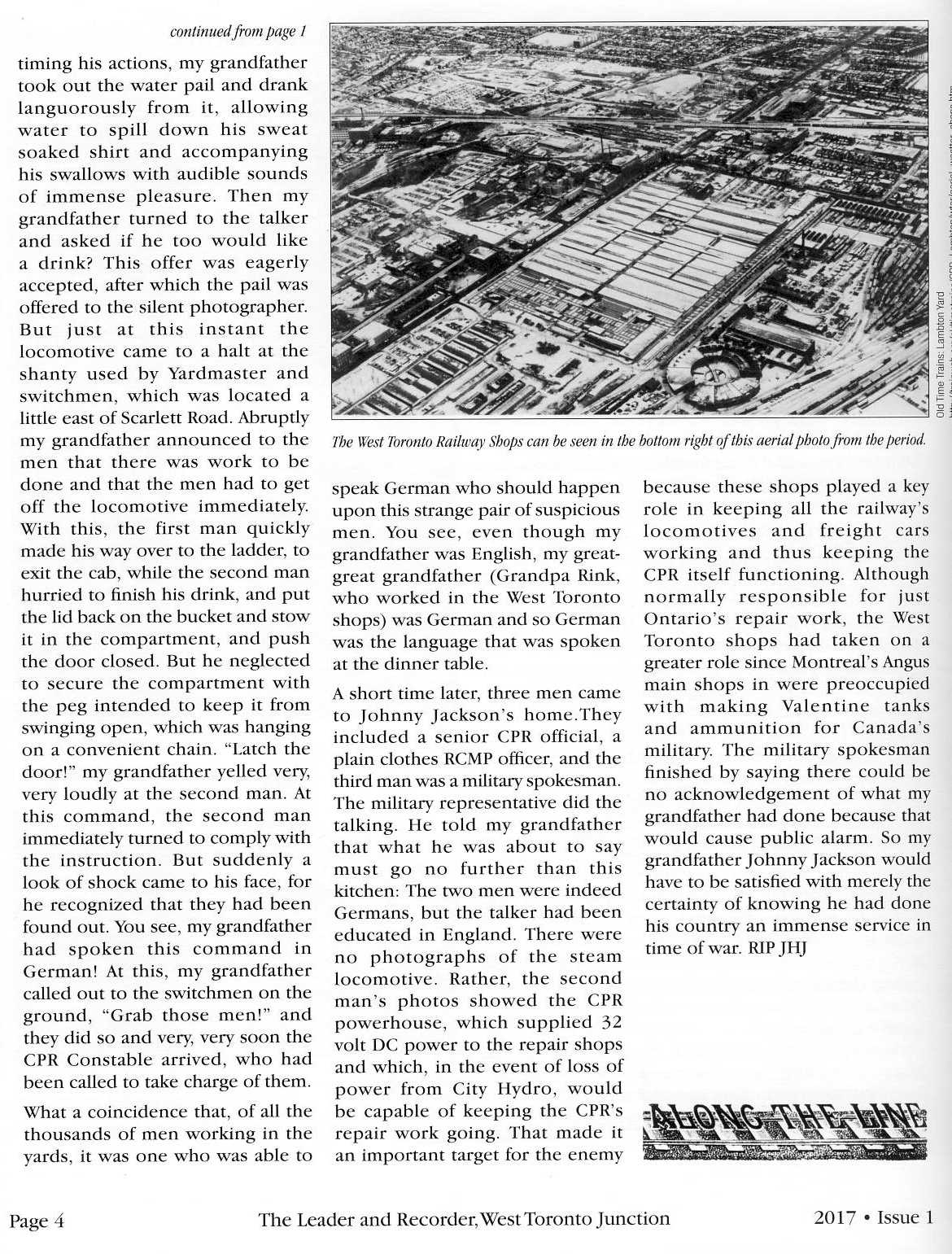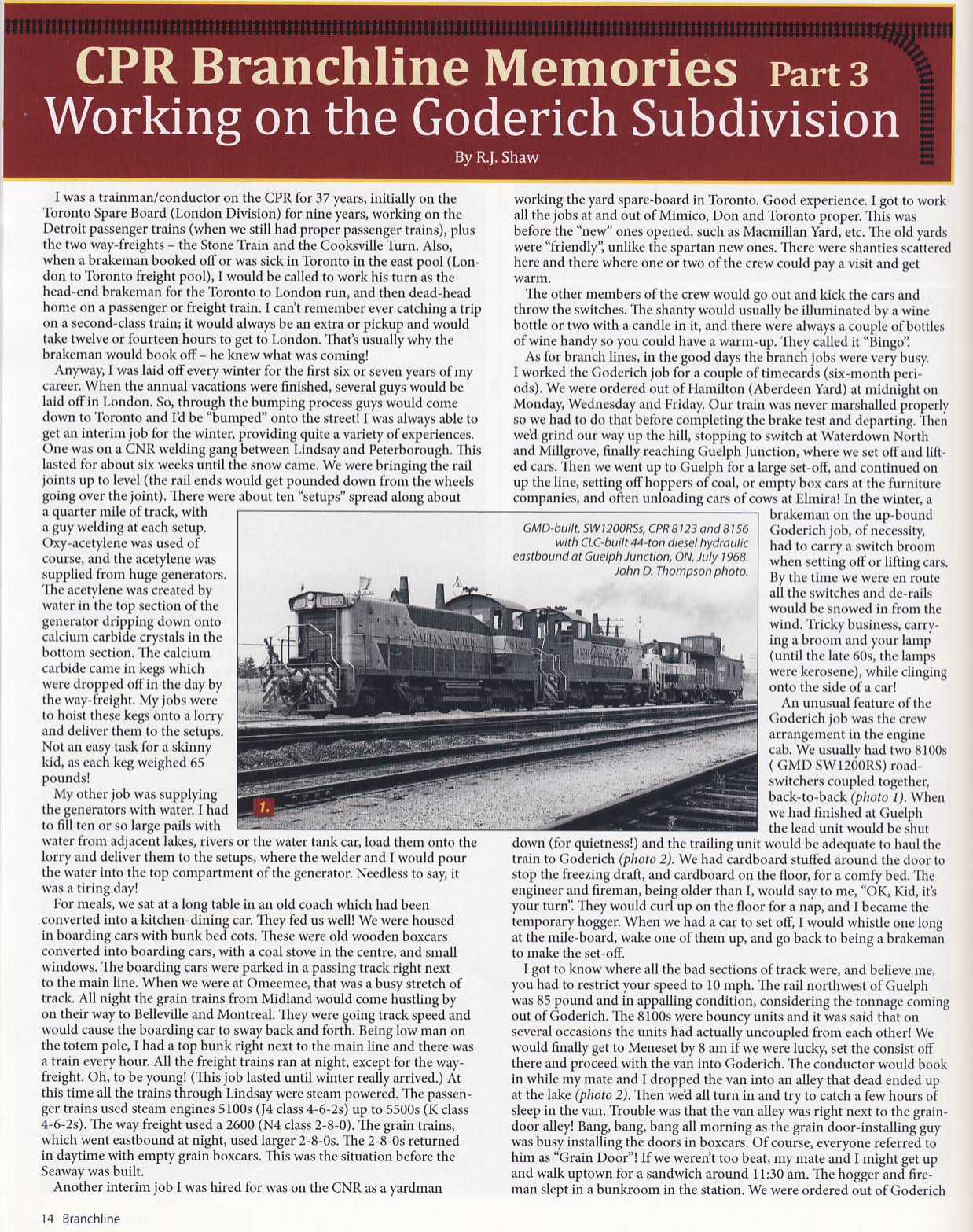 I Remember by Herbet Stitt Real life stories by retired CPR locomotive engineer. NEWEST German Spies Caught in the Junction. During World War II. NEWER Reminiscences of a Railroader Newt Rossiter.Stories of a fireman and boilerman at John Street roundhouse in Toronto during late years of steam era. Including details and histories of different trains and their engines. Life in Senneterre region. Railroaders and locals. Interesting!