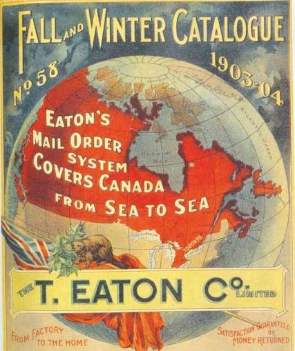 T. Eaton catalogue cover. Mail order shopping from a catalogue for anything and everything people could want was a way of life for decades from the late 19th century all over Canada. Operated by department store chains that sold everything; including clothing, furniture, and appliances often with entire floors for each. Eventually they were in many cities and towns in downtown business districts and later frequently anchoring indoor shopping malls. Toronto merchant Timothy Eaton opened a dry goods store in downtown in December 1869. His T. Eaton and Company started a mail order catalogue in 1884 that lasted until 1976. The company itself would carry on until it went bankrupt in August 1999. Likewise fellow merchant Robert Simpson equally operated a country wide mail order business The Robert Simpson Company Limited. These catalogues were printed in Spring-Summer, Fall-Winter and even Christmas editions which grew to 500 pages by 1920's. Every household had one or both businesses catalogues. They were used in every city, town, village or rural farm and at one time even sold small houses and barns! Decades before online shopping and Amazon existed people shopped from home and quickly received free delivery by rail freight and express with local truck to their door operated their own companion fleets. Truly, as the old saying goes, "There is nothing new under the sun!"