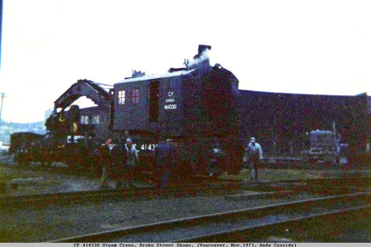 there is a LOT of light thrown. Final note. The steam crane CP 414330 is currently part of the West Coast Railway Association collection in Squamish BC. The CP 8515 was rebuilt in the mid 80s to CP 1624 which is currently (12/2011) assigned to Coquitlam Shop as part of the 1624-1020 Mother/Daughter set. The CP 8632 was rebuilt as well and renumbered CP 1536 and currently resides in Moose Jaw.