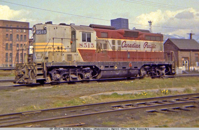 In addition to those shots, attached are pictures of two GP9s that were kicking around. CP 8515 was a steam generator equipped GP9 that was backup power to #2, The Canadian, if required. Note the air reservoir on the roof of the unit. Normally they are down at the fuel tank level, but on units with steam generators the space is needed for the water tank.