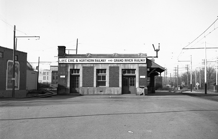 About 1948 I was working at the Galt Printers off Main Street in Galt and the means to get home to Glen Morris was by way of the Lake Erie and Northern interurban train. After work I would head two blocks East up Main street to the station. On the way I would pass Nagies grocery store where the front window contained the doughnut machine. I had to pass quickly so not to provoke a hunger pang as I could only afford to buy one now and then. It was always interesting to watch the mechanical machine whip up chocolate or caramel coated ones. The plain ones were also good. (same price). Next came the station an attractive red brick with bay window and a large waiting room with row seats of sturdy oak in a standard CPR design. The walls had the ubiquitous CPR prints showing the wonders of train travel in the mountains. Settling into one of the seat's you could listen to the ticking of the station clock that had adjustable red letters on the face stating how many seconds slow or fast it was. Or there would be the occasional clatter of the telegraph sounder that had more to do with train operation on the parent CPR than the LE&N. The station agent was a lady who wore large pearl earrings and would take train orders from the Preston dispatcher as well as selling tickets. She had a nervous condition and would shake her head as she went about her work. I would have a book of paper tickets because it was cheaper to ride that way. They were punched when purchased and the conductor would tear one off on the train. I don't recall the ticket price this many years later, but it was probably reasonable fare. The station toilets were at the South end of the building and were quite modern compared to the ones at the stations out on the line. The big brass knobs on the doors had a slot for 5 cents to open the door to the stalls. The message is, don't get caught short without change. I wonder what big brass in Montreal came up with that idea ? Going outside on the wooden platform you could look around the back of the station at the big wall of the PW Gardner Company advertising the windows and doors the company manufactured. The noise of the working machinery in the factory could be heard producing wooden windows and doors. Mill Creek flowed past next to the mill and there was a track leading across a wooden trestle over the creek to service the plant as well as the McDougal pump manufacturing works further on. Just across Main Street you could see the CPR freight house with tracks containing boxcars with men loading and unloading freight shipments with handcarts.