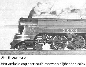 The Way It Was By F. H. Howard LIFE for a junior foreman in a secondary engine terminal may not have changed in principle since the last days of steam on the Canadian Pacific, but it must have changed in detail. First of all, in steam days, each of your engines needed various rigorous examinations of its motion. Ah, yes, the motion, shaking itself as if to pieces with every turn of the wheel: inertia forces; unbalanced forces; centrifugal forces. In consequence, side rods had to hold the driving axles their precise distance apart, supplementing the shoes and wedges which couldn't retain their precision in spite of your constant attention. Pistons started to or tended to bump cylinder heads. Engineers reported pounding, or you anticipated their reports; and periodically you instructed that rods were not to be greased on incoming power so that you could fulcrum a great crowbar on a driver spoke and lift up each rod and then let it down to check the slack betwixt pin and hushing. You had to rebush the rod if the slack was excessive, or rebore the big end if it was split - all of which you hoped could be deferred until the entire affair had to be dismantled for white-lead testing.