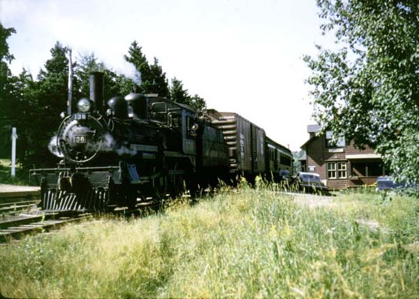 Service stop near Scotch Settlement on return to Norton, 7/21/59. All prior photos 7/22/59 except shot at Cody. I rode the train on 7/21, the day they had the boxcar going north.