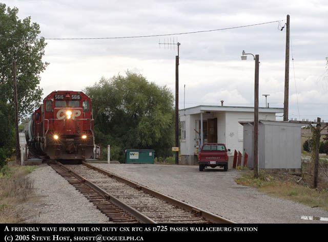 CSX D725 with CPR run-through power led by SD40-2 5616. September 30, 2005 South of the drawbridge and specifically between McNaughton Ave and King