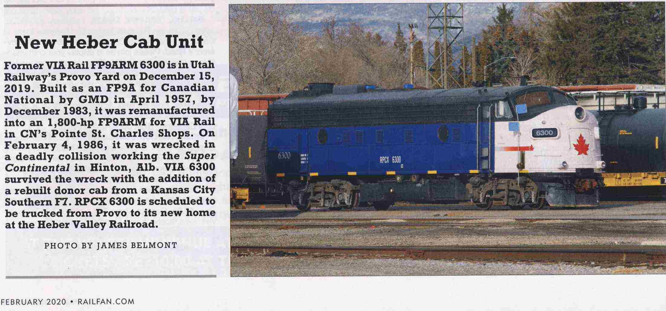 6300 acq. 2011 (ex VIA 6300 FP9u r/b 12/83 nee CN 6524) FP9A GMD A1196 4/1957 and Mount Cascade. Subsequent owner; HVRX 6300 (Heber Valley Ry) Isolated tourist train. Coast Mountaineer Two photos of the trial journey of "Coast Mountaineer"