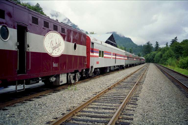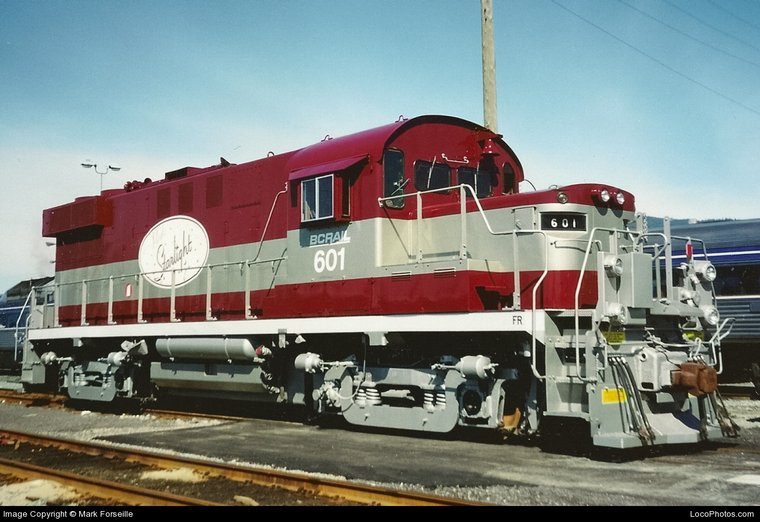 BCRail 601 in special paint scheme for Pacific Starlight Dinner Train. North Vancouver 4/11/1999 |