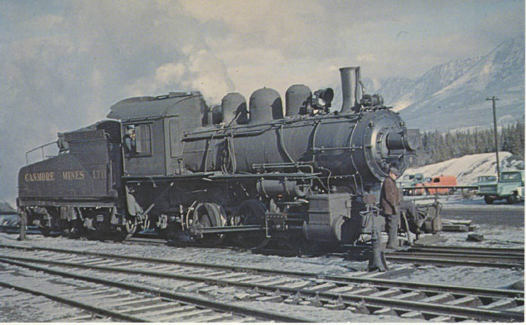 hauling two ancient wooden coaches of the Morrissey, Fernie & Michel