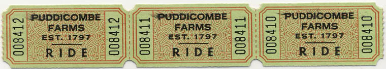 Common style of admission tickets used to ride train. 2" x 1"