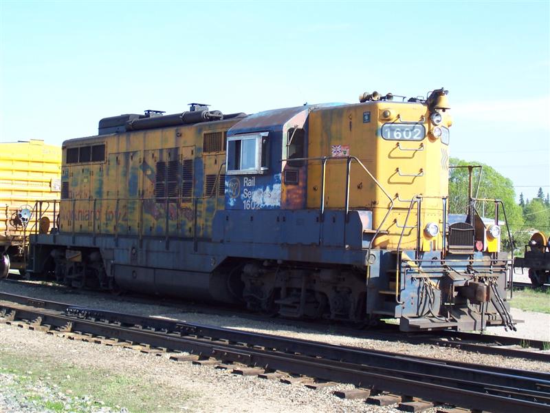 Sitting in the yard at Cochrane in fading paint; reverting back to the 'classic' scheme 1602 awaits the call to duty. Due to heavy tonnage exceeding the capacity of the 1600's, the yard crew is using the 2 1800's that arrived in from Kapuskasing, leaving 1602 to rest.