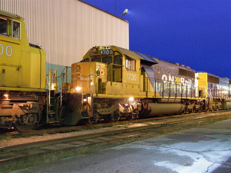 Resting with SD75I's 2105 and 2100, SD40-2 1730 sits behind the diesel shops waiting for servicing before heading back north.