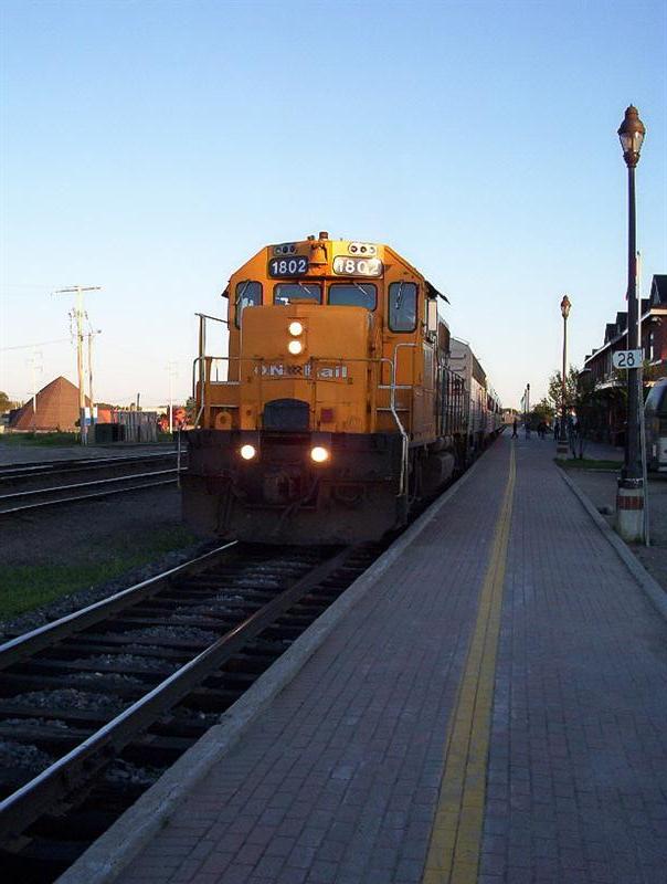 1802 prepares to depart Cochrane with the Northlander on a beautiful morning. Because of Cochrane being situated on the 49th parallel, the sky is bright at 0605 during the summer months.