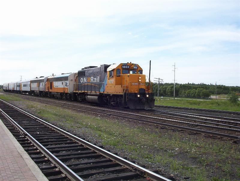 1802 and FP7Au 2001 are todays power on the Polar Bear Express. They are just pulling out of the coach yard, preparing to pull up on the mainline to the platform.