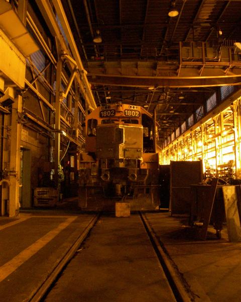 1802 on track 'Diesel 1' in the North Bay shops getting a 'nose job' from an accident, and a general rebuild while in the shops.