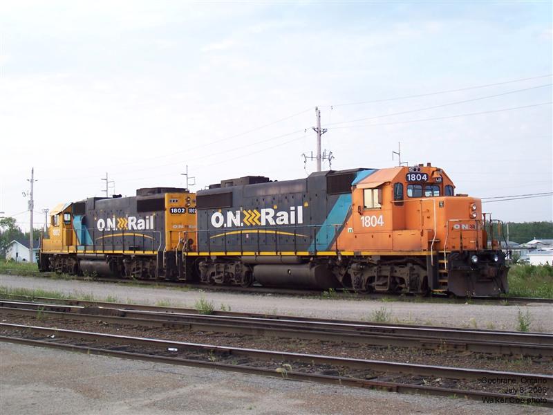 Pulling up from the shops, 1804 and 1802 pose near the station. These units are running 313 to Kapuskasing today.