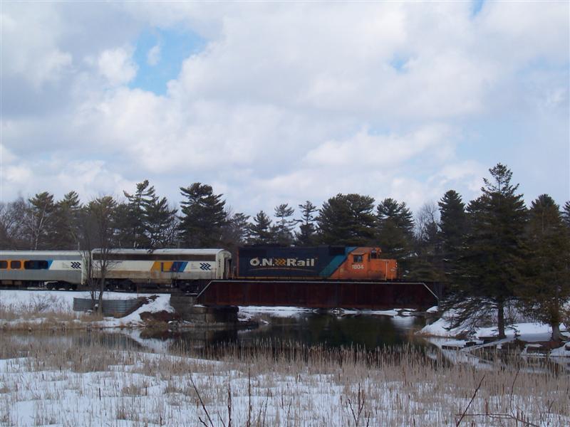 On the point of the 'Northlander' 1804 crosses the same bridge as 1802 the week before.