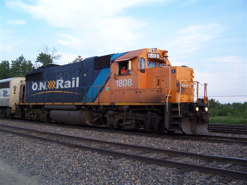 1808 pulls into the yard after a day long trip from Toronto. The train is pulling in on track 1 and will have to pull down the center lead due to a derailment the week before. The evening sun makes for a perfectly lit shot as the last train of the day makes it's move in Cochrane.