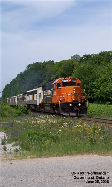 Running late like normal, the 'Northlander' lead by GP38-2 1809 screams out of Gravenhurst 50 minutes behind schedule.