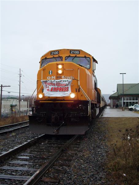 On the point of the southbound "Santa Claus Express", 2100 sits at the station while the kids unload from another successful run.