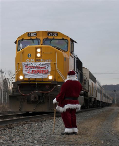 I think this proves once and for all that Santa loves the train. The train will pull by, and Santa will board the last coach to visit with the young passengers on the train.