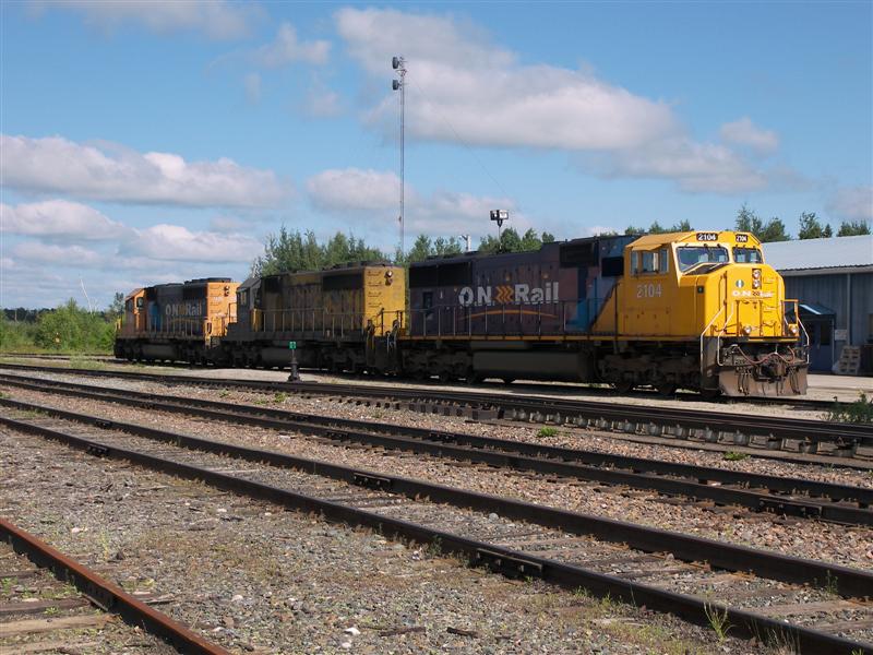 2104 is passing time on a beautiful and warm Sunday at the Englehart shop track with SD40-2's 1737 and 1735. Note how both SD40's are sans snow shields.