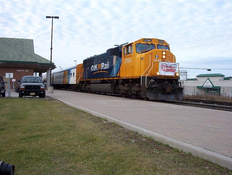On the point of the "Santa Claus Express", 2104 waits patiently at the station as the kids load into the coaches.